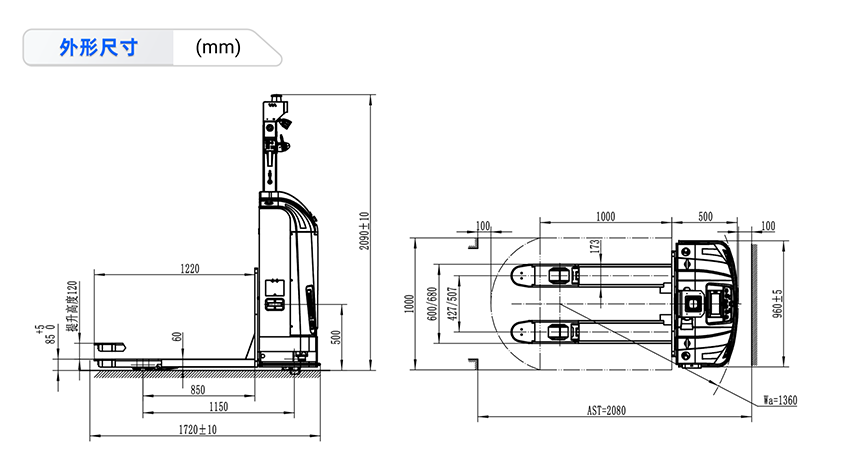 | 货叉外宽 | 600/680mm | ||