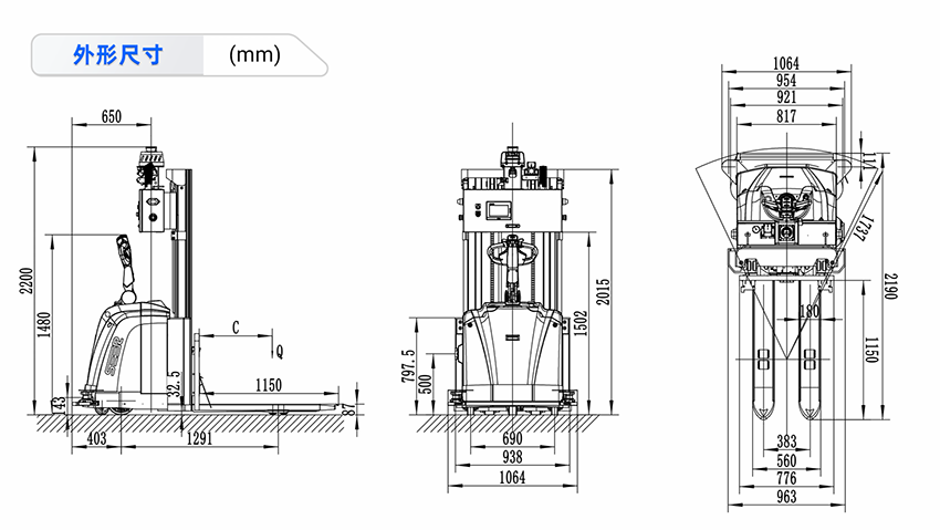 | 整车叉车:长*宽*高(不含叉尖) | 2190*1064*2200mm | ||